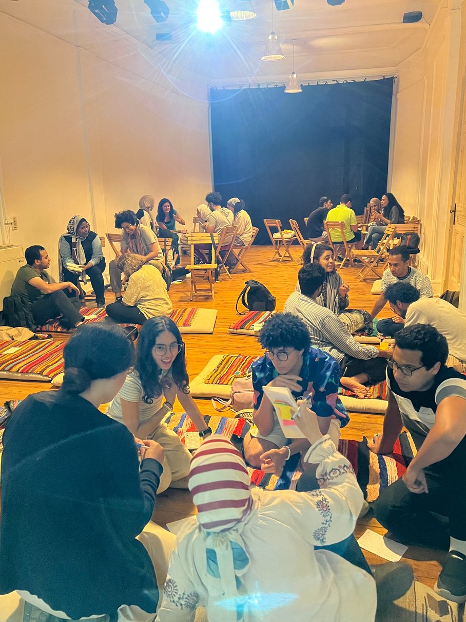 This was a creative writing workshop based on the C.L.O.S.A.T technique developed by Michael Rabinger. This was a volunteering opportunity that I conducted through MedFest Egypt during Dawar’s Annual Arts Festival in summer 2023. This workshop was open to the public, attended by 30 people, and was fully delivered in Arabic Language.